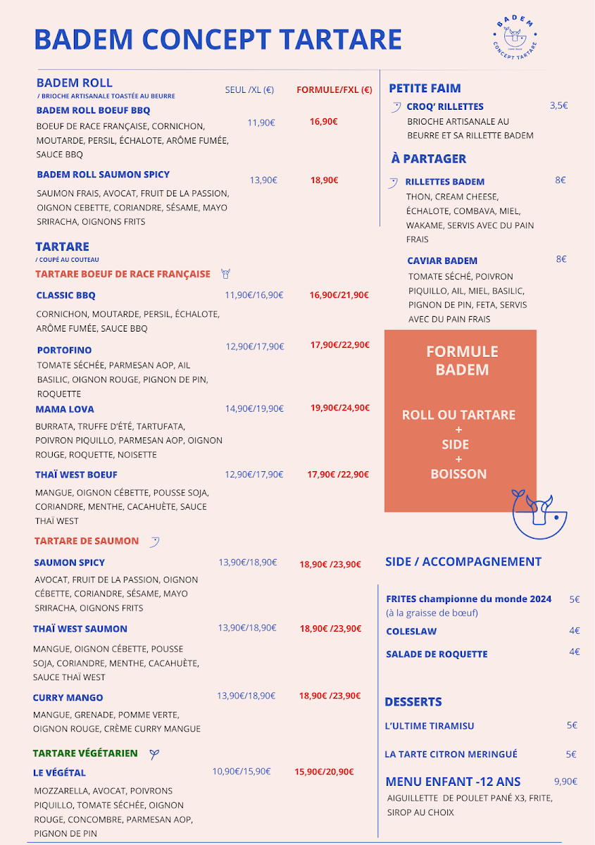 Introducing BADEM concept tartare, a culinary gem located at 13 Rue Pocquet de Livonnières in Angers, France. This innovative restaurant specializes in both meat and fish tartares, offering a delightful twist on classic French cuisine. The menu boasts a variety of fresh, high-quality tartares, with standout dishes like the Portofino Tartare and Tuna Tartare, praised by regulars for their exceptional flavors.